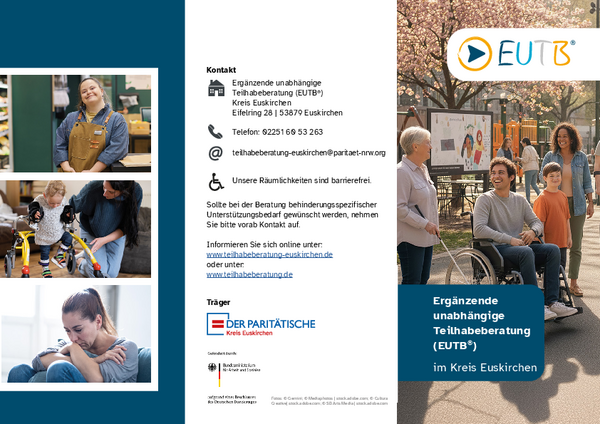 Die Ergänzende unabhängige Teilhabeberatung (EUTB®) wurde durch das Bundesteilhabegesetz geschaffen. Sie ergänzt bereits bestehende Beratungsangebote. Sie wird vom Bundesministerium für Arbeit und Soziales gefördert. Träger der Ergänzenden unabhängigen Teilhabeberatung (EUTB®) Kreis Euskirchen ist der Paritätische Wohlfahrtsverband NRW. Der Verband setzt sich schon lange für mehr Teilhabe und Inklusion ein. Auch in anderen Städten und Kreisen in Nordrhein-Westfalen gibt es Beratungsstellen. Viele davon sind ebenfalls beim Paritätischen NRW angesiedelt. Einen Überblick über die EUTB® Beratungsstellen gibt es auf der EUTB®-Website.