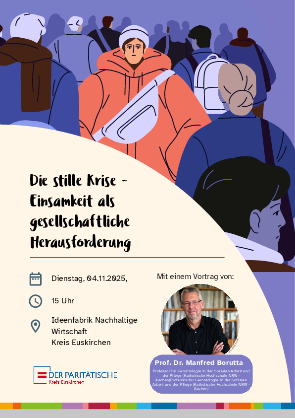 Der Paritätische Kreisgruppe Euskirchen und die Selbsthilfe-Kontaktstelle laden zu einer Fach- und Vernetzungsveranstaltung ein, um das Thema Einsamkeit im Kreis Euskirchen gemeinsam zu bearbeiten, Angebote zu verknüpfen und Handlungsansätze zu entwickeln.